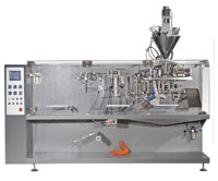 旋轉式給袋式自動包裝機適用于平面袋,自立袋,拉鏈袋等各種形狀的熱封的復合袋.